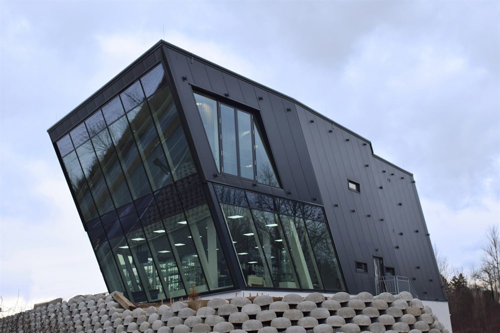 Montovaná hala Showroom Praha-Ruzyně je navržena jako polyfunkční objekt ve tvaru nepravidelného lichoběžníku s jedním přízemním a dvěma nadzemními patry. Architekt zde s ohledem na výrazný design budovy zvolil její nahnutí od svislé roviny pod úhlem 61° směrem k nejvíce exponovanému pohledu.