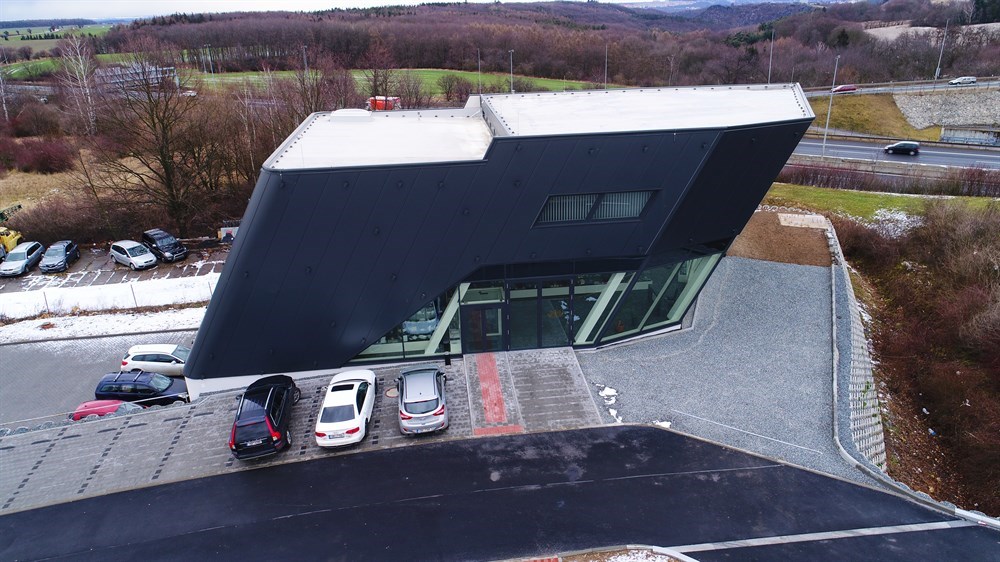 Nová referenční hala, na kterou jsme opravdu hrdí. Montovaný showroom Praha-Ruzyně v sobě snoubí skvělý design, netradiční technické postupy a kvalitní certifikované materiály, které odolají nahnutí haly od svislé roviny pod úhlem 61°.