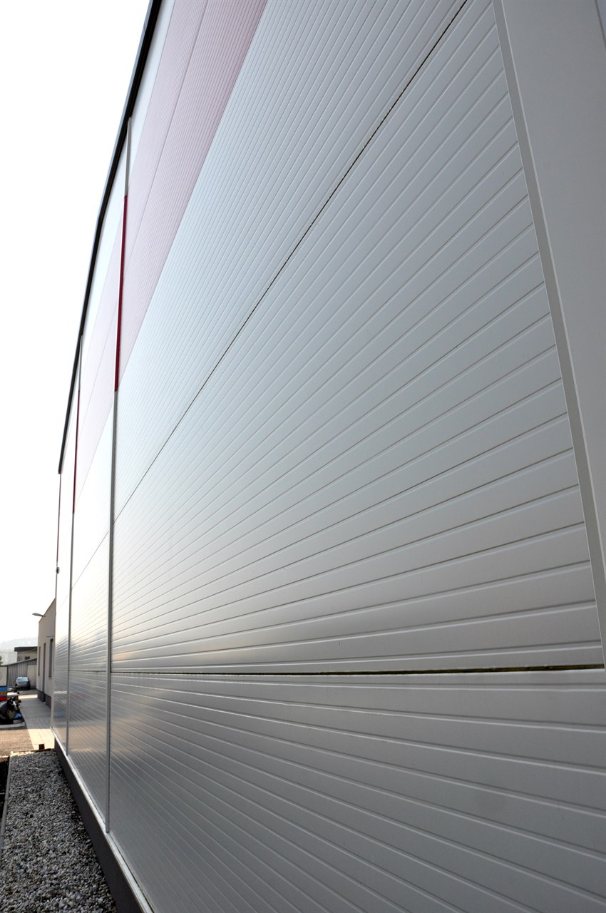 Střešní panel KS1000 RW tl. 120mm DP3 RAL 9007, skládaný plášť nosný TR 39/333/0,75mm+folie SIKA+tep. izolace 120mm; stěnový panel KS1150 TL a KS1000 TL tl. 120mm RAL 9002, 3000 + KS1150 FR tl. 120mm