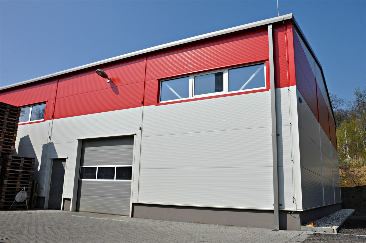 Hala je rozdělena na hlavní skladovou část obdélníkového tvaru, k níž je připojena přístavba o rozměru 9x16,4 m. Obě části tvoří jeden společný funkční celek. Hala disponuje sedlovou střechou s 10° sklonem a hranatým okapovým systémem. Nosná rámová konstrukce včetně pomocných konstrukcí haly je opatřena speciálním protipožárním obkladem Ordexal s povrchovým nátěrem na 30 min. Opláštění haly je z důvodu vysoké požární odolnosti řešeno sendvičovými panely s tloušťkou 120 mm. Hala bude sloužit jako sklad k přilehlým stávajícím výrobním objektům.